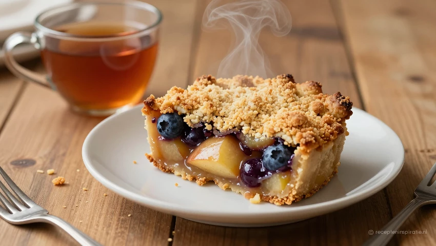 Experimenteer met verschillende soorten fruit, zoals peren, bramen of frambozen. Je kunt ook noten of zaden toevoegen aan de crumble voor extra textuur en smaak.