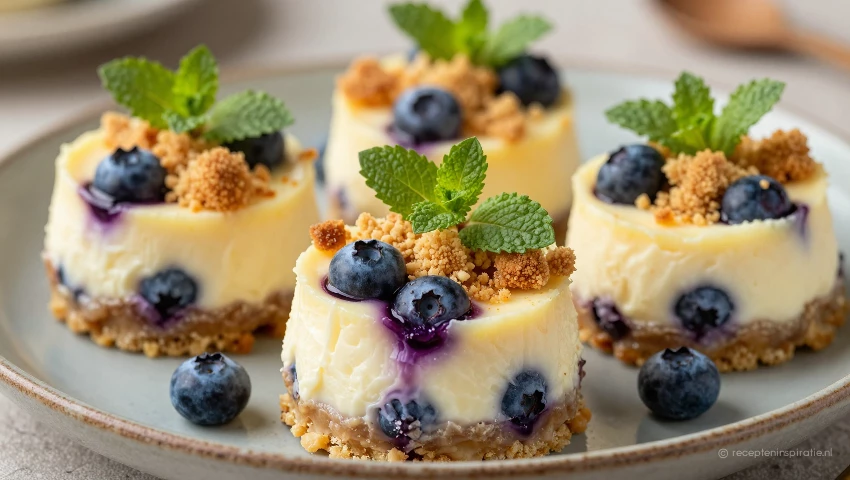 Mini cheesecake met bosbessen en crumble