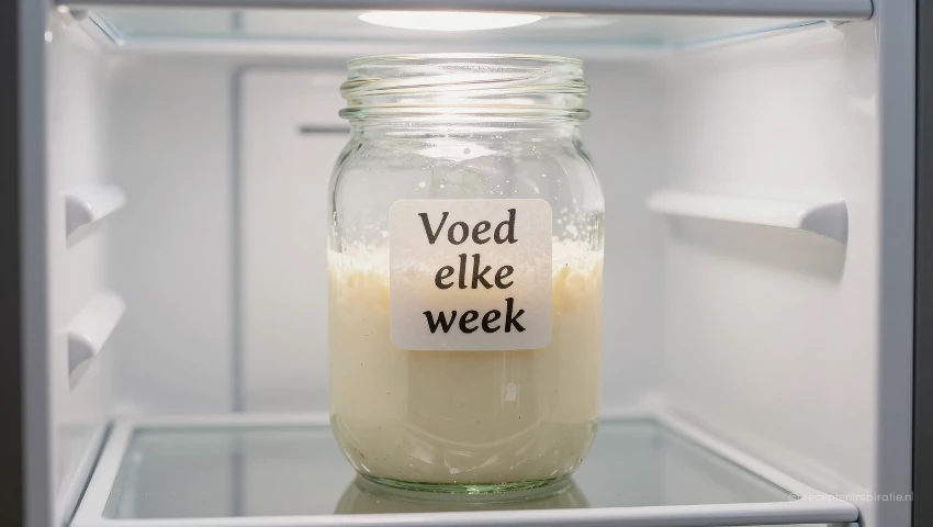Als je de starter niet dagelijks wilt voeden, kun je hem in de koelkast bewaren. De activiteit vertraagt, maar de starter blijft levend. Voed hem minimaal één keer per week om hem in goede conditie te houden. Haal de starter 24 uur voor gebruik uit de koelkast en geef hem een voeding om hem weer actief te maken. Voor langere opslag kun je de starter ook invriezen, maar houd er rekening mee dat dit de smaak en activiteit enigszins kan beïnvloeden.