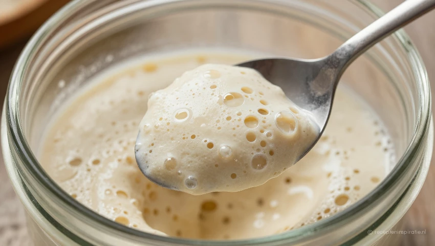 Na ongeveer 7 dagen zou je een actieve starter moeten hebben. Om dit te testen, doe je een kleine hoeveelheid starter (ongeveer een theelepel) in een glas water. Als de starter blijft drijven, is hij actief en klaar voor gebruik. Zinkt hij, dan heeft hij nog een paar dagen extra voeding nodig. Een actieve starter ruikt licht zuur en zit vol kleine belletjes. Houd er rekening mee dat elke starter uniek is; sommige hebben iets langer nodig om volledig te ontwikkelen.