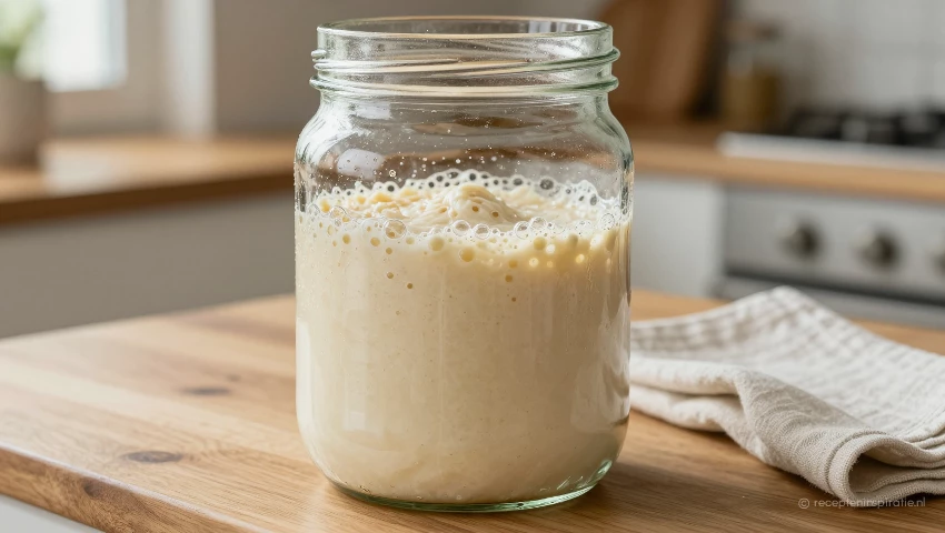 Laat het mengsel 24 uur op kamertemperatuur (ongeveer 20–25°C) rusten, uit direct zonlicht en op een plek met een stabiele temperatuur. Tijdens deze periode beginnen de natuurlijke gisten en bacteriën in de bloem te fermenteren. Mogelijk zie je nog weinig activiteit, maar het fermentatieproces is al begonnen. Houd de starter in de gaten en noteer eventuele veranderingen, zoals kleine belletjes of een lichte geur. Let op: als er schimmel verschijnt, gooi de starter weg en begin opnieuw met een schone pot en verse ingrediënten.