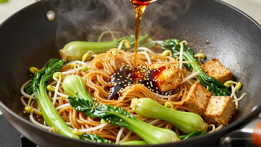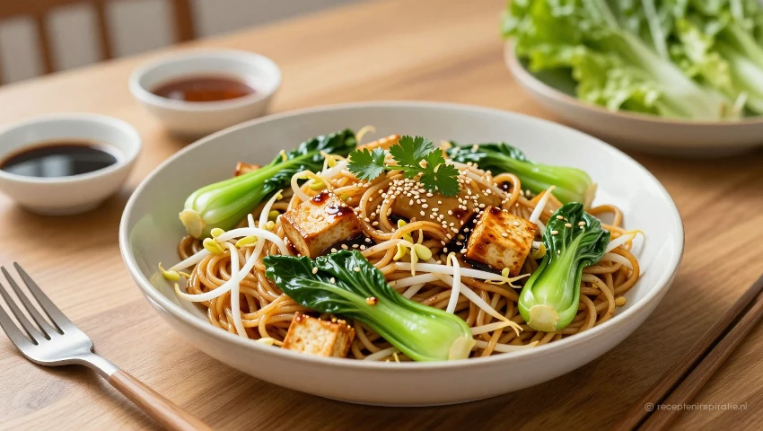 Deze roerbaknoedels met paksoi, taugé en tofu zijn een snelle en gezonde maaltijd, perfect voor doordeweekse avonden. Het recept is eenvoudig te maken en biedt een heerlijke combinatie van smaken en texturen.