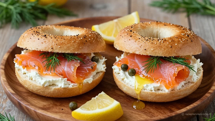 Deze bagels met gerookte zalm zijn een heerlijke en snelle lunchoptie. De combinatie van romige roomkaas, zoute zalm, frisse dille en pittige kappertjes maakt het een ware smaaksensatie.