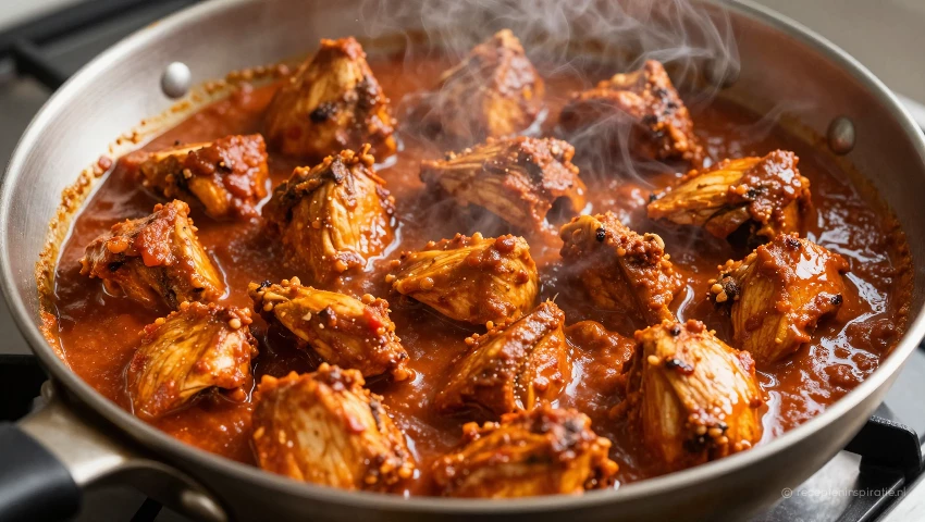 Doe de gebakken kip terug in de pan met de saus. Roer alles goed door zodat de kip volledig bedekt is met de saus. Laat dit nog een paar minuten pruttelen zodat de smaken goed kunnen intrekken. Proef en pas de kruiden eventueel nog aan. De combinatie van de zachte kip en de smaakvolle saus zorgt voor een heerlijke ovenschotel.