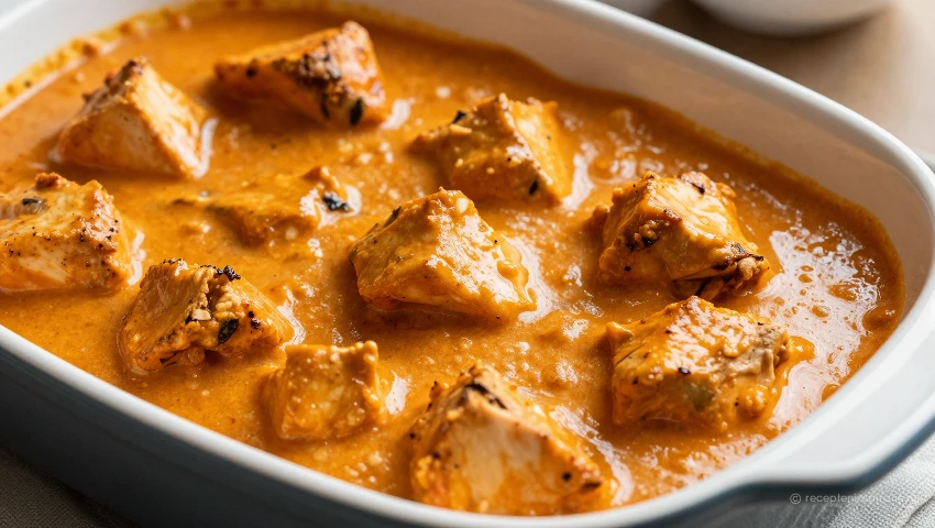 Indiase butter chicken ovenschotel met naanbrood